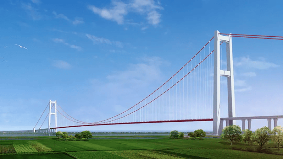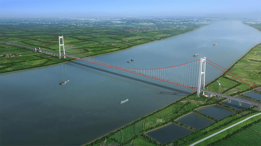 汉南长江大桥全长2.894公里,为主跨1600米的双塔单跨钢箱加劲梁悬索桥,也是武汉市第13座长江大桥。