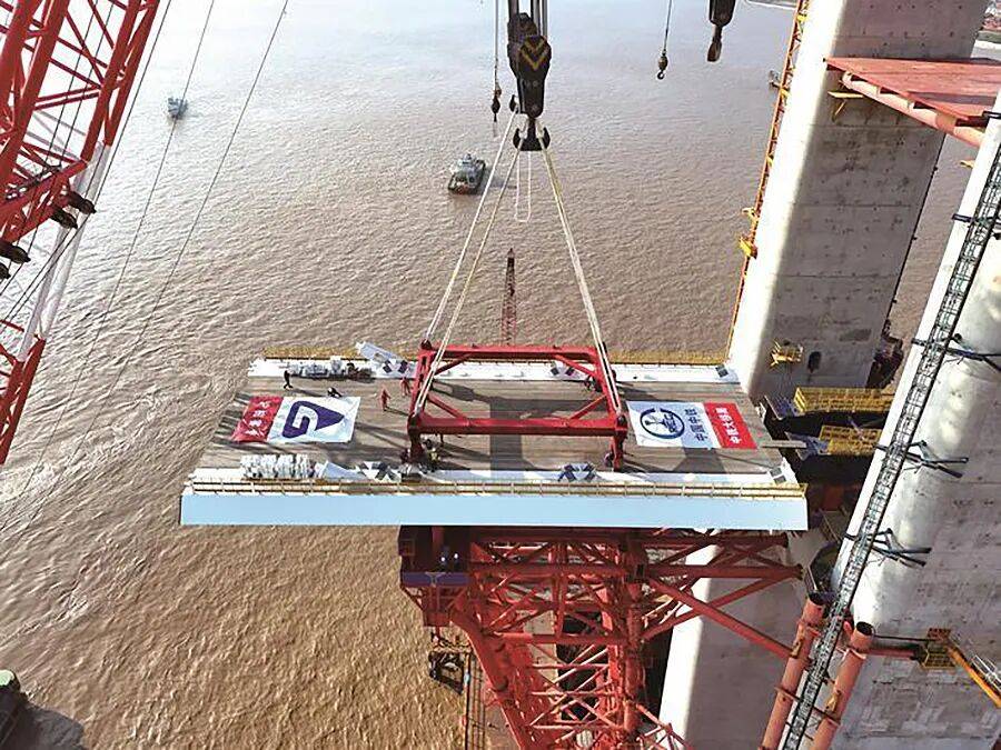 此次架设的钢箱梁节段长22米、重64.8吨。面对梁体自重大、施工风险高等挑战,项目部30余名管理和技术人员组成青年突击队,科学制定架设方案,严格执行安全检査和技术交底,通过试吊全面检验大型设备,确保架设过程安全可控。